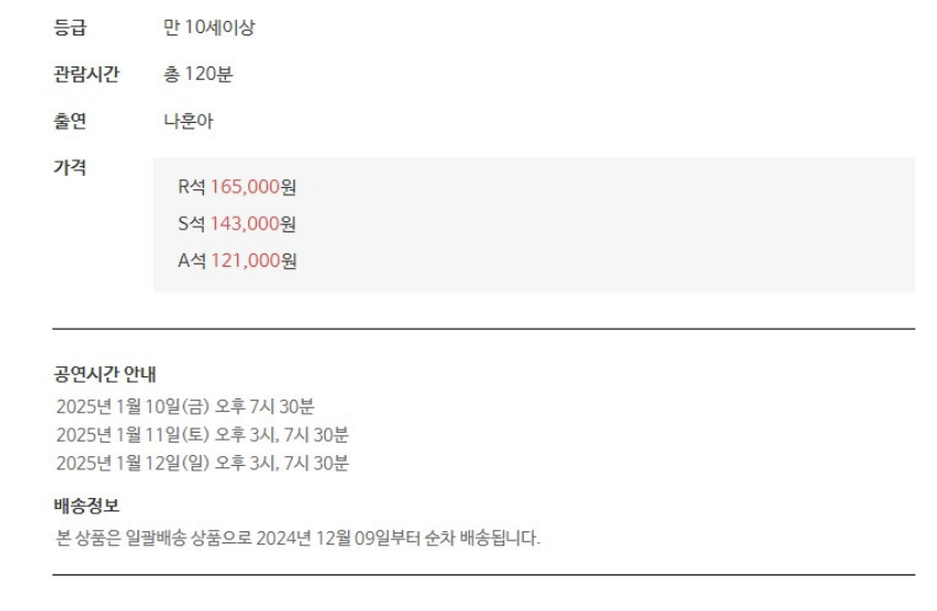 - 공연일: 2025년 1월 10일(금) ~ 1월 12일(일)