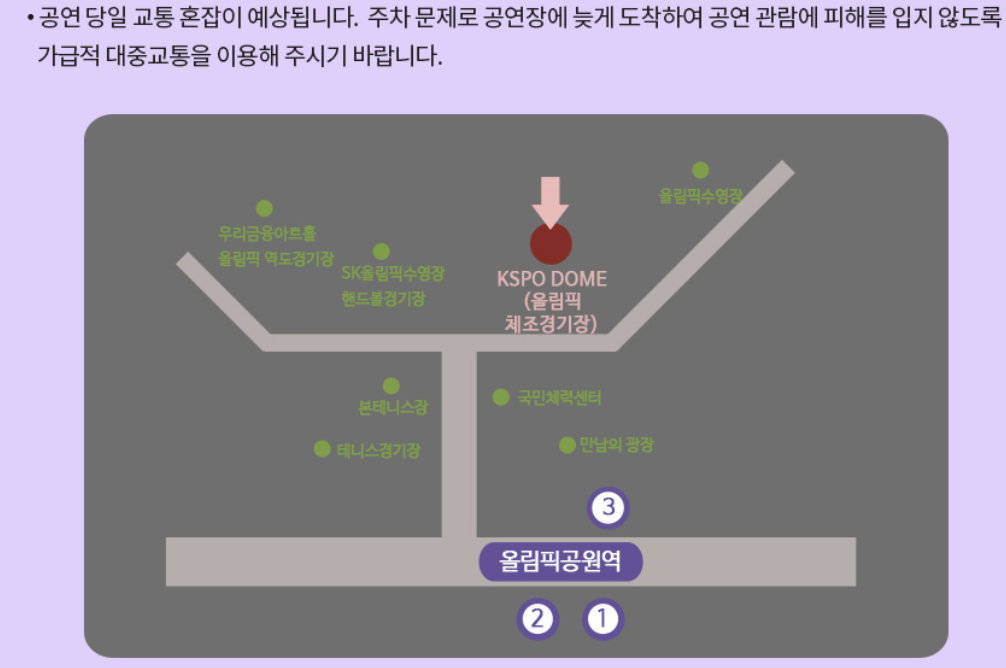 - 장소: 서울 올림픽공원 KSPO DOME (올림픽체조경기장)